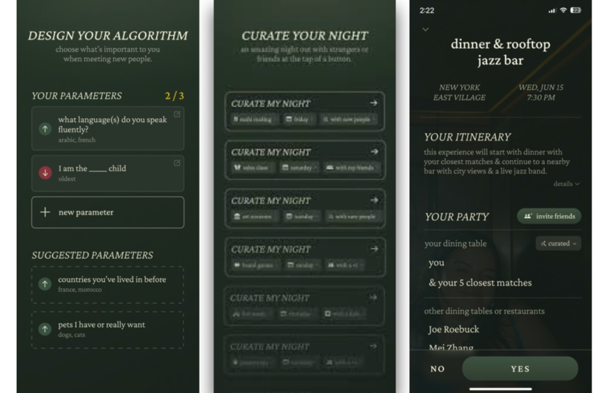 222 is an iOS-only social events app that organises in-person meetups by grouping strangers based on personality test results. The app sends invitations to nearby public events, such as comedy clubs or wine bars. Participants go through a vetting process, and those selected are notified on the day of the event. For users who feel socially anxious, the app allows them to bring a plus-one.
