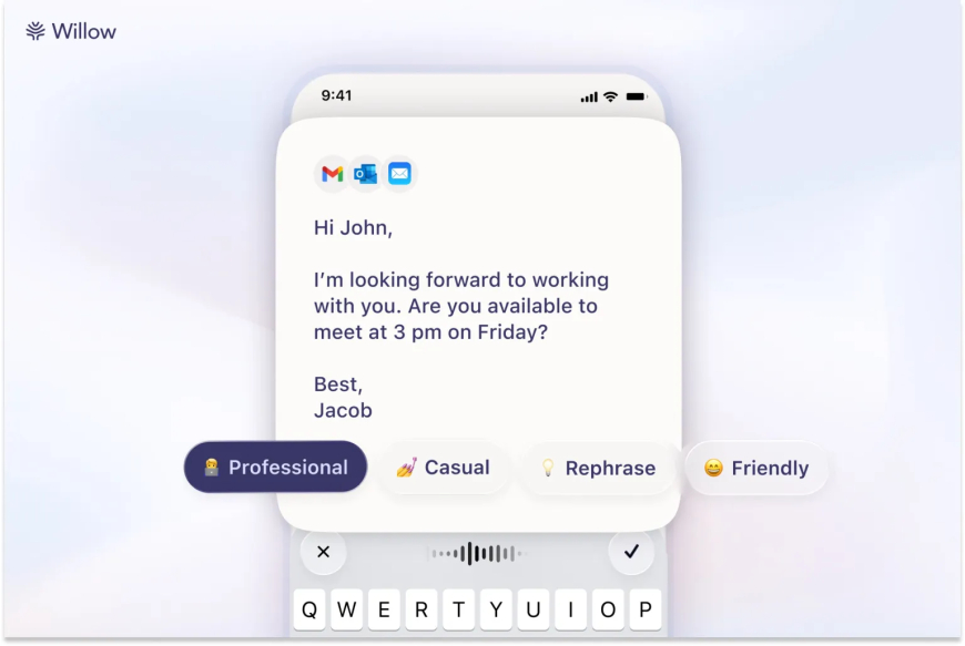 Willow lets you dictate up to 2,000 words per month for free on the desktop version. Individual subscriptions start at $15 per month for unlimited dictation and the ability to remember your writing style.